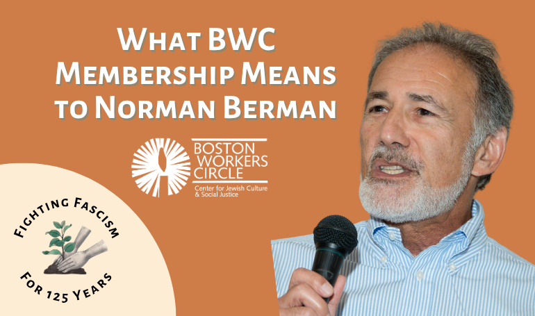 I discovered the Boston Workers Circle 28 years ago through A Besere Velt, the Yiddish chorus. I grew up speaking Yiddish, and I was overjoyed to…