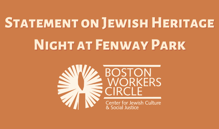 The Boston Workers Circle is honored to join the Boston Red Sox in celebration of Jewish Heritage Night at Fenway Park. We are a 100-plus-year-old pro-labor,…